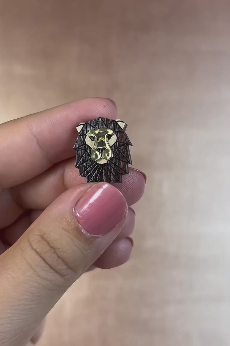 Verleihen Sie Ihrem Look mit der handgefertigten Löwen-Pin, einem eleganten geometrischen Accessoire, das Eleganz und Nachhaltigkeit vereint, einen besonderen Touch.