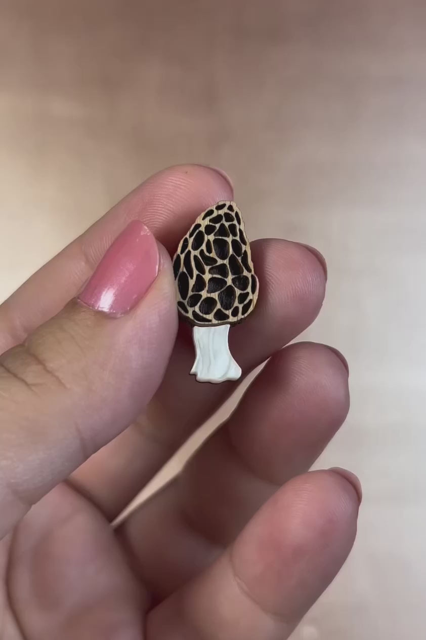 Verleihen Sie Ihrem Outfit einen Hauch von Natur mit der handgefertigten Morchel-Pin aus umweltfreundlichen Materialien in atemberaubenden Erdtönen.