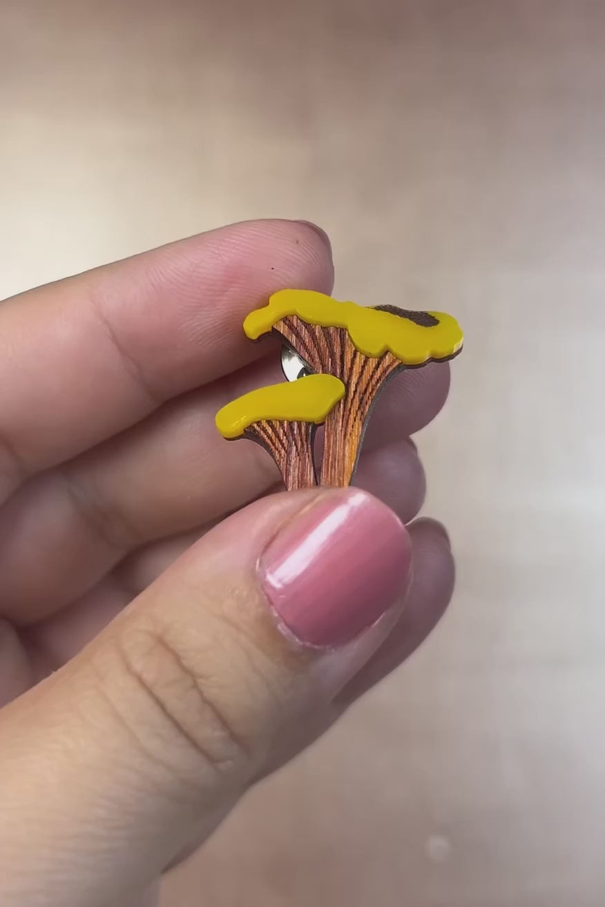 Verleihen Sie Ihrer Garderobe mit unserer handgefertigten Pfifferling-Pin aus umweltfreundlichen Materialien und mit lebendigen Details einen von der Natur inspirierten Charme.