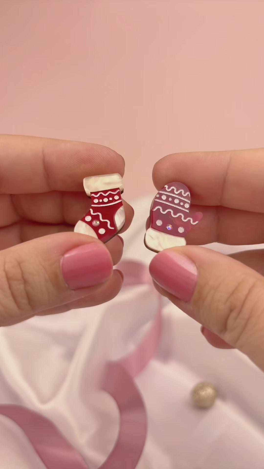 Erleben Sie den Zauber der Weihnachtszeit mit unseren einzigartigen Ohrringen. Inspiriert von gemütlichen Strickwaren, haben wir ein Design entworfen, das die Form eines Strumpfes und eines Fäustlings nachahmt. Diese Ohrstecker sind aus leuchtend rotem und weißem Perlmutt-Acrylglas lasergeschnitten, was ihnen einen schönen Glanz verleiht. Da sie extrem leicht sind, können Sie sie den ganzen Tag bequem tragen, sei es auf der Weihnachtsfeier oder beim gemütlichen Beisammensein mit Freunden.