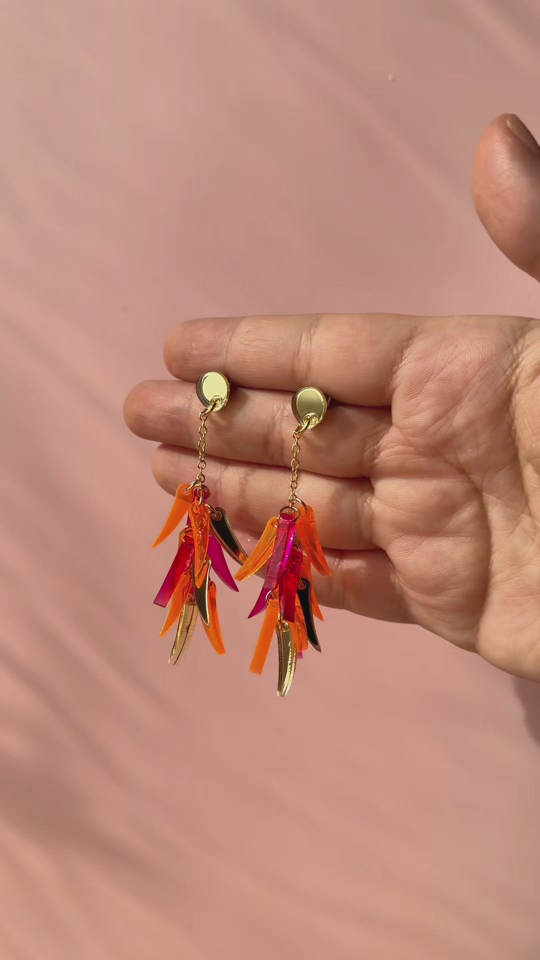 Trag sie einmal und du wirst verstehen, warum alle Blicke auf dich fallen. Die Tuft-Ohrringe sind eine Kaskade geschwungener Acrylblätter, die an einer zarten vergoldeten Kette hängen und sich bei jedem Schritt frei bewegen - wie kleine Wedel, die eine warme Brise einfängt. Wähle aus vier unverwechselbaren Charakteren: Schildpatt-Schwarz für eine wilde, grafische Kante; transluzentes Weiß mit warmer Goldmaserung für ein dezentes Leuchten; Tropic in leuchtendem Orange und Fuchsia für einen farbgewaltigen Clash; und Lagoon, eine Mischung aus frostigem Mint und blau-grünem Glitter, der sich anfühlt, als wäre er direkt vom Meeresgrund geholt.